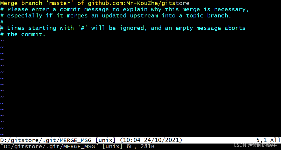 先git commit提交,不加提交信息 ,然后会弹出一个文件,从里面添加注释就可以