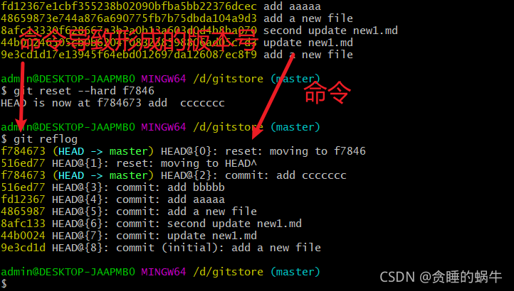 git log --pretty=oneline --abbrev-commit 查看历史的commit id
