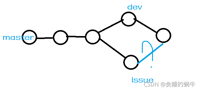 如下图,dev和issue是从master中分离出来的,分别进行自己的工作,然后dev先进行了提交,那么此时issue是否还能提交?