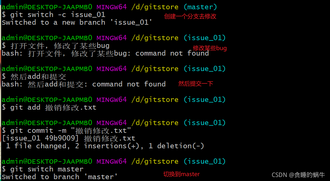 bug是在master上,那么dev是从master上复制的,那么dev上也会有这个bug,在这期间,是用issue_01提交的修改,那么就可以只看那一次的修改,