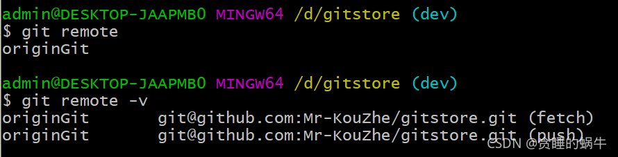 本命令 如果本地分支名和远程分支名一样,那么就可以直接省略部分内容,比如本地dev要推到远程库的dev,就可以直接写成git push <远程主机名> dev