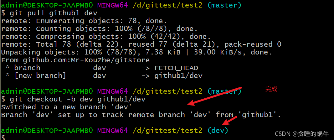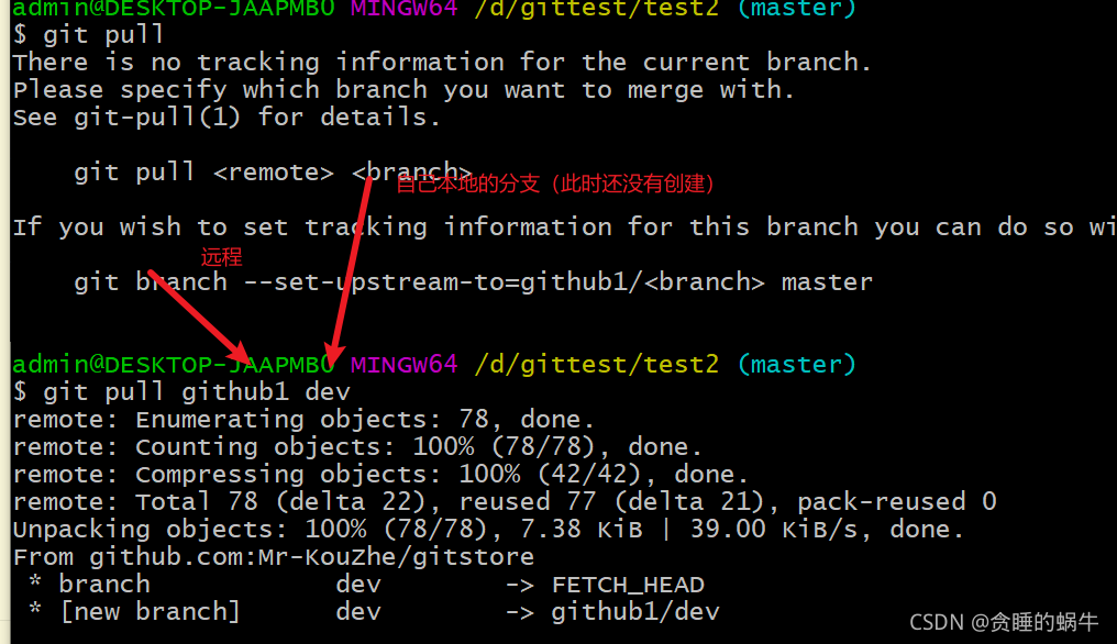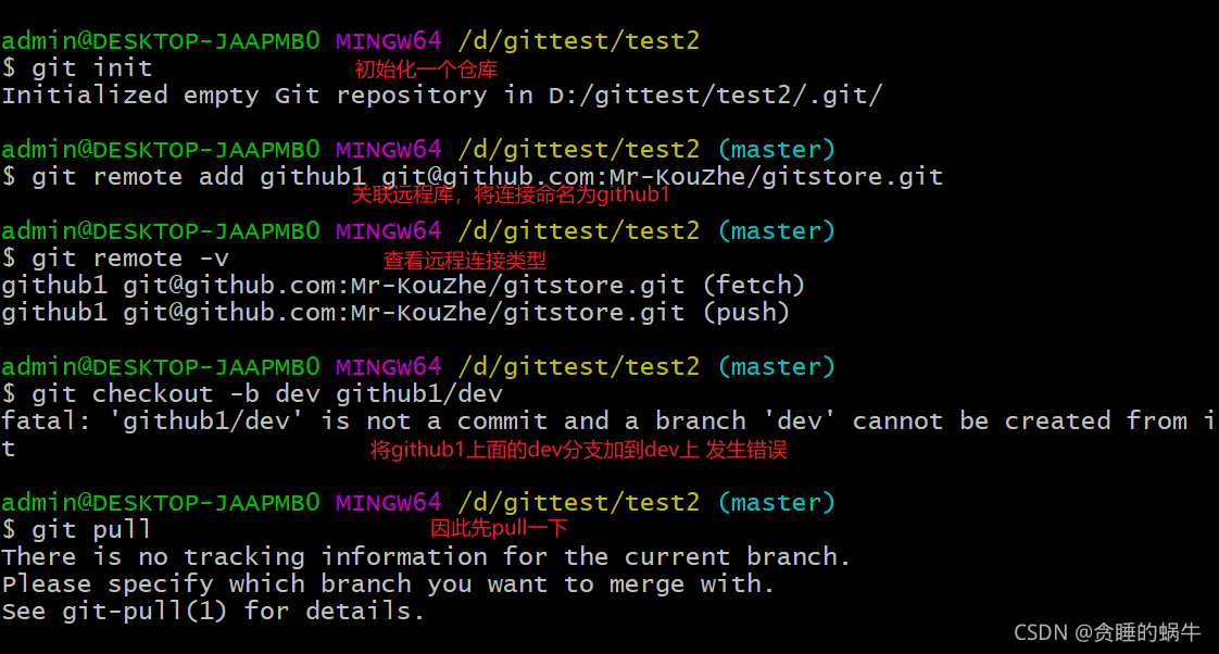 1、 如果要存放项目的分支还没有建立 git pull <关联名> <自己本地的分支(还未建立)>