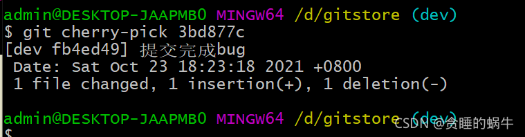 将某一次的修改加入到我这里面git cherry-pick <提交产生的提价hash值>