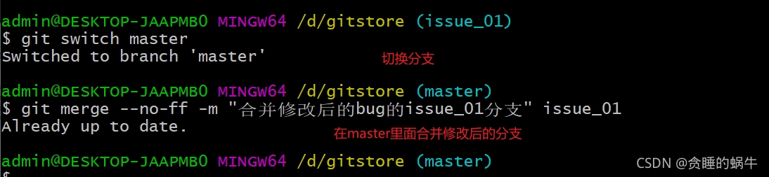 这里的提交是提交时显示的hash值,并非master合并分支,合并分支并没有显示合并分支的hash值