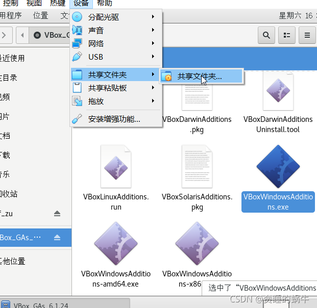 1、点击vbox中的安装增强功能