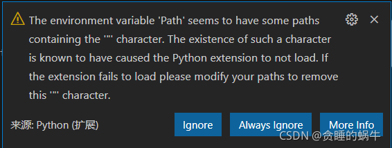 vscode报错:The environment variable ‘Path‘ seems to have some paths containing the ‘“‘ character