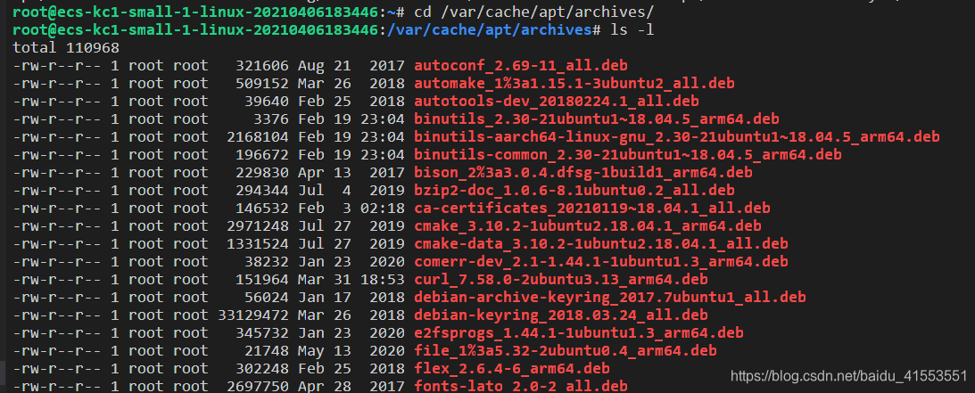 - 删除缓存也就是删除所有软件安装包 sudo apt-get clean 实际上清除的是/var/cache/apt/archives目录下的.deb文件