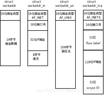struct in_addr sin_addr; ip地址结构,也有字节序
