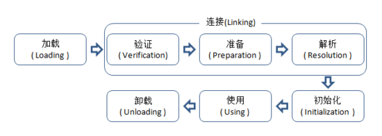 二、类加载过程:验证、准备、解析、初始化、使用、卸载7个阶段。