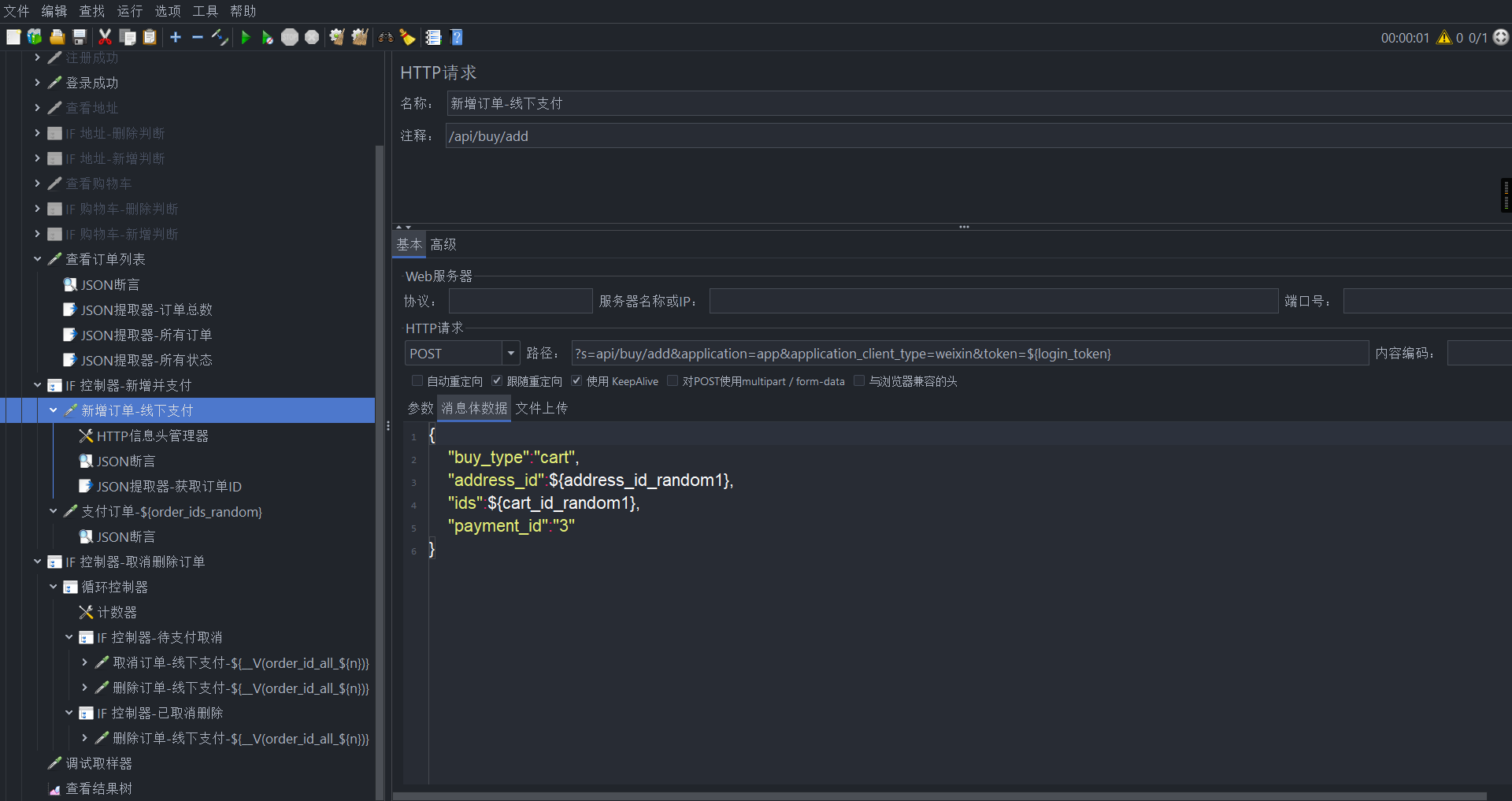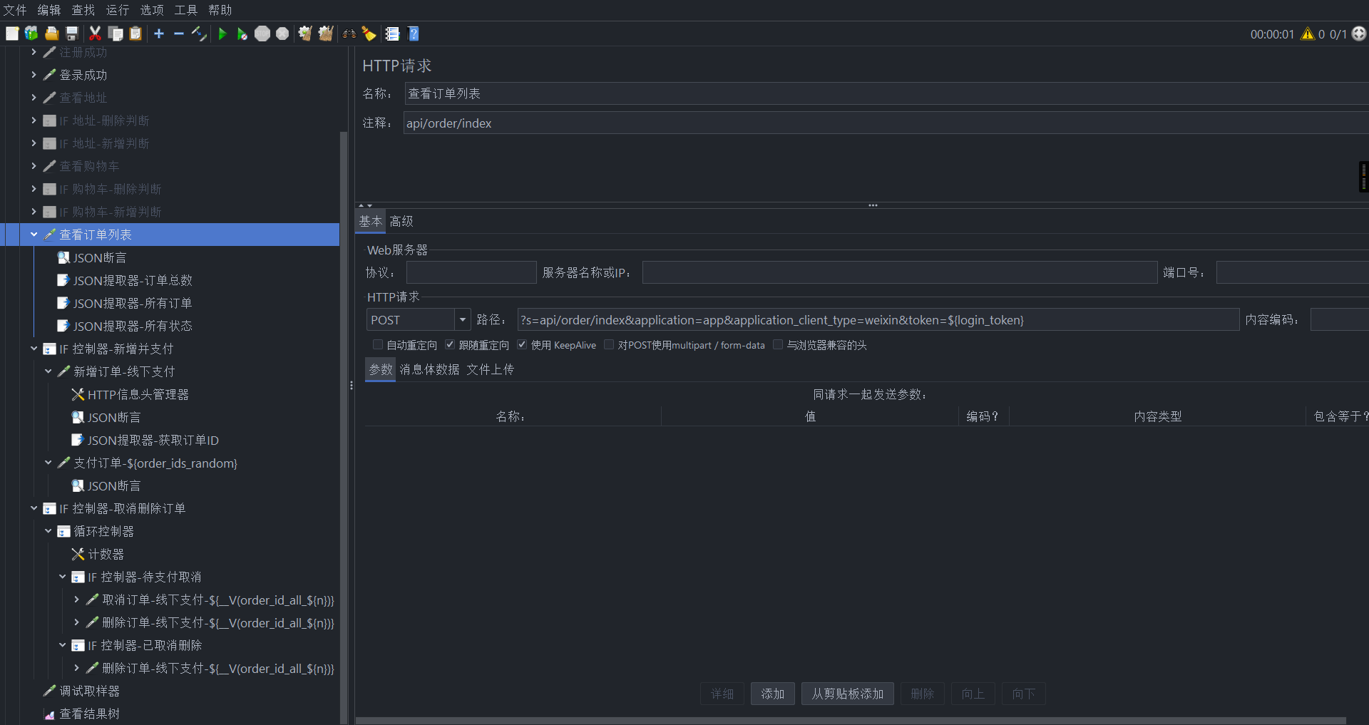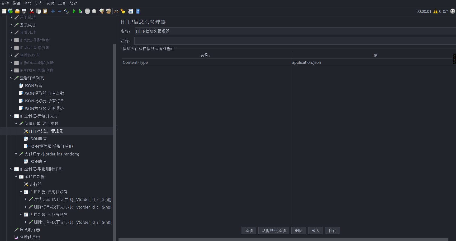 根据自身需求,如果新增订单参数较多,用到【消息体数据】,则需要添加【HTTP信息头管理器】。