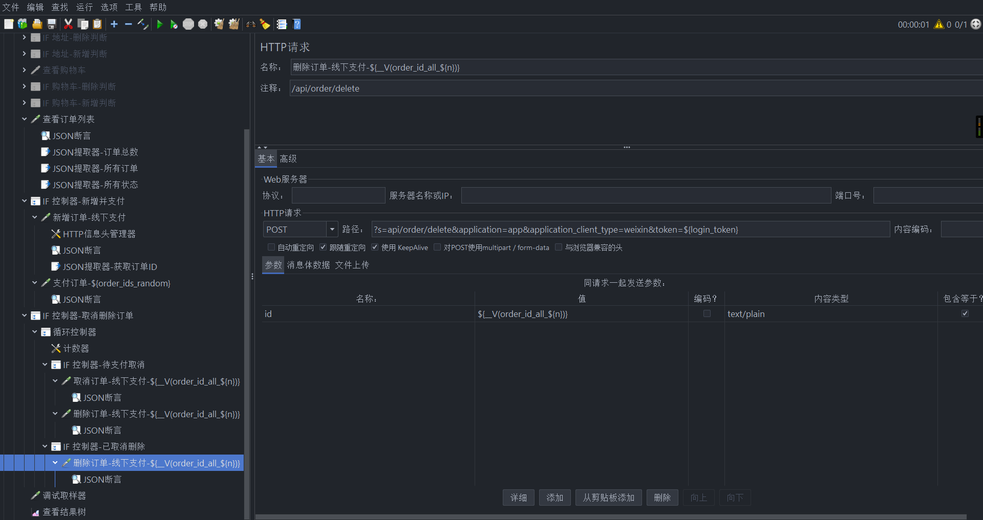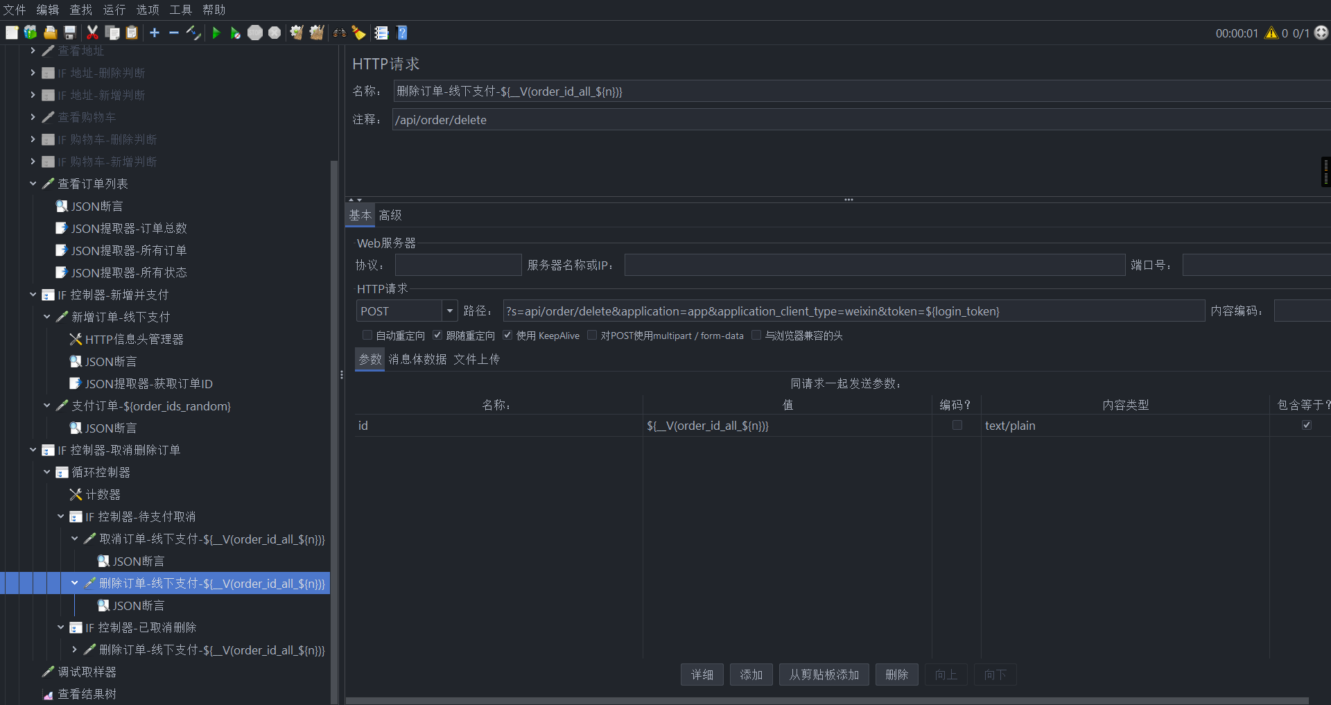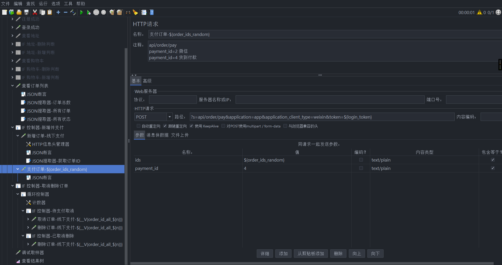 根据自身需求,如果新增订单参数较多,用到【消息体数据】,则需要添加【HTTP信息头管理器】。