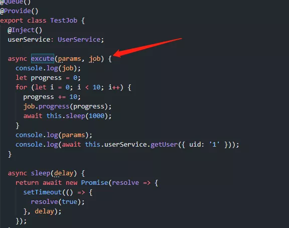 任务的定义,通过 @Queue 装饰器,定义一个任务类,内必须含有 execute 方法,并且是 async 的。为什么需要是 async 的因为,这个代码,是为了分布式,相当于有个内部的任务调度过程。