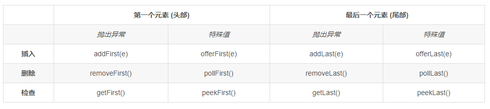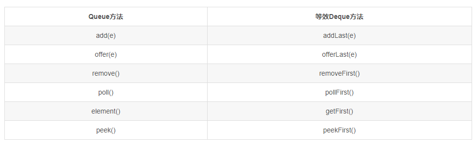 二.Deque是一个双端队列(“double ended queue”)接口,继承自Queue接口,LinkedList是最常用的。