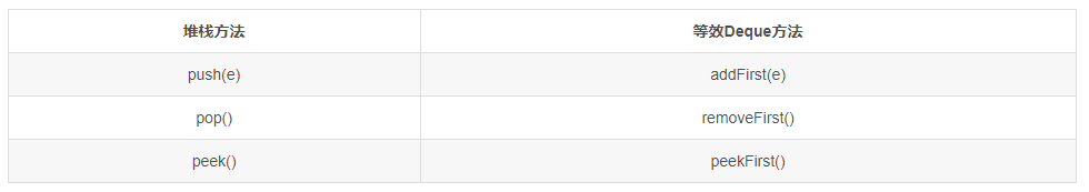 注:Deque堆栈操作也可以使用方法:push()、pop()、peek()。