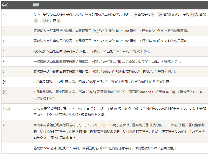 参考链接/文档查询链接:https://www.w3cschool.cn/regexp/x9hf1pq9.html