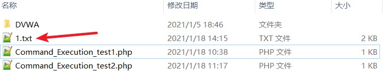 构造参数:http://127.0.0.1/Command_Execution_test4.php?cmd=ipconfig>>1.txt,可以在目录下看到1.txt