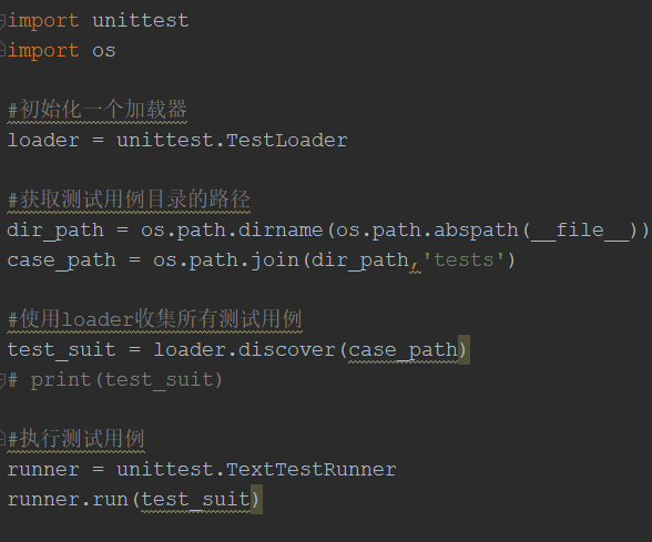 此时容易陷入参数错误的牛角尖中,寻找是否start_dir参数传错,重新审视代码发现初始化加载器,执行用例时,TestLoader,TextTestRunner后均缺少(),修改后程序正常运行。
