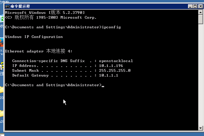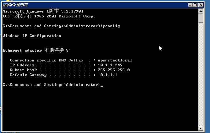 1、远程桌面方式登录到CA服务器,在CMD下查看本机IP地址: