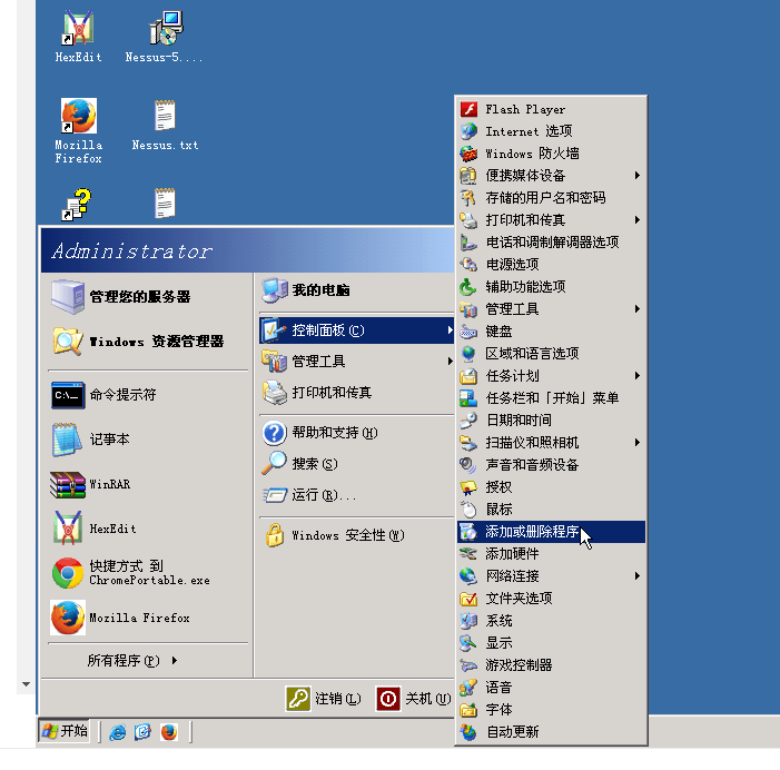 依次点击:“开始”->>“控制面板”->>“添加或删除程序”,以打开添加或删除程序对话框: