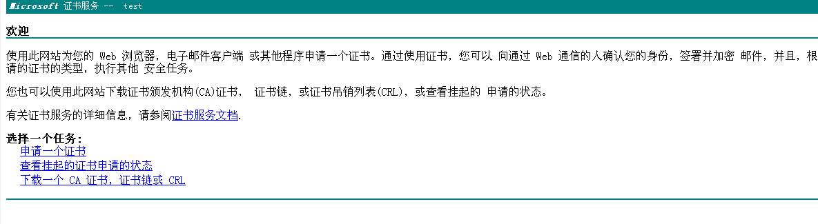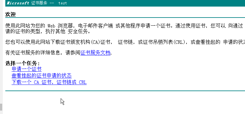 打开浏览器,输入刚才我们搭建的证书服务器地址: