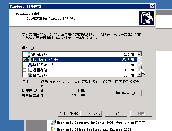 双击“应用程序服务器”,选中“ASP.NET”与“Internet信息服务(IIS)”,如下图: