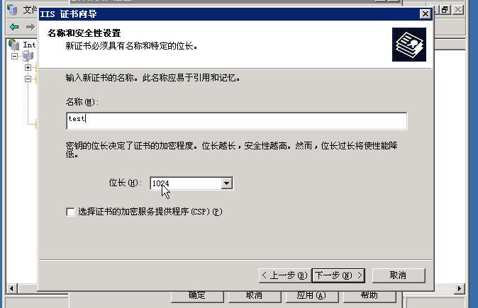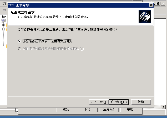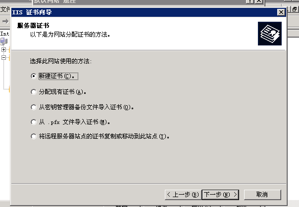 出现如下对话框,保持默认选项“新建证书”不动,继续下一步: