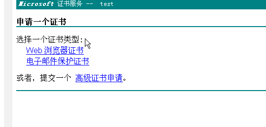 Http://10.1.1.245/certsrv/ (在实验中根据自己情况填写IP),在证书服务页面点击“申请一个证书”