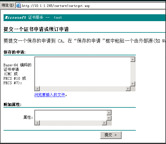 打开浏览器输入 http://10.1.1.245/certsrv/ 可以浏览证书服务器