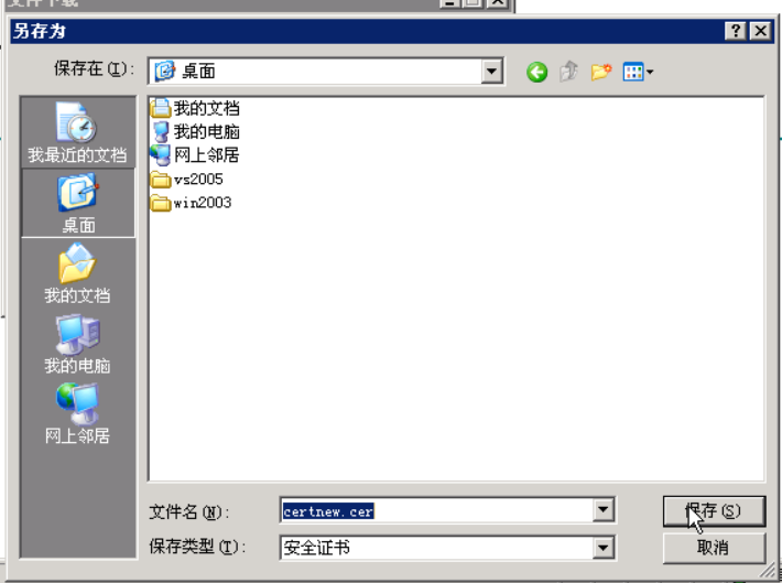 将证书保存到桌面,以便查找,可以看到桌面上的证书文件。
