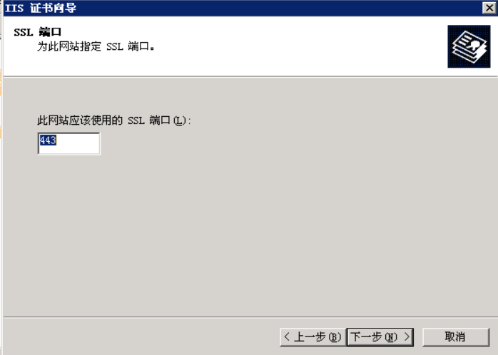 在“处理挂起请求”中选择“浏览”,选择刚才下载的证书文件,并打开,下一步,使用默认的443端口,点击下一步: