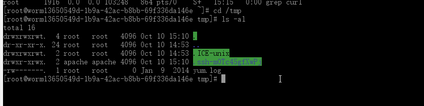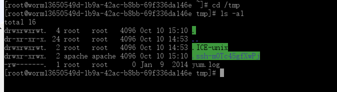 [root@worm-test1 tmp]# ls -al