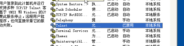 (3)右键“我的电脑”->管理->服务和应用程序->服务,找到Telnet服务,关闭之: