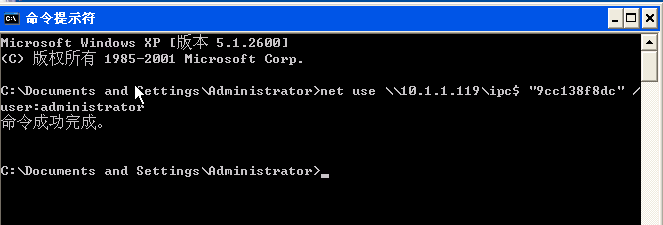 命令:net use \\10.1.1.119\ipc$ "主机B的密码" /user:administrator