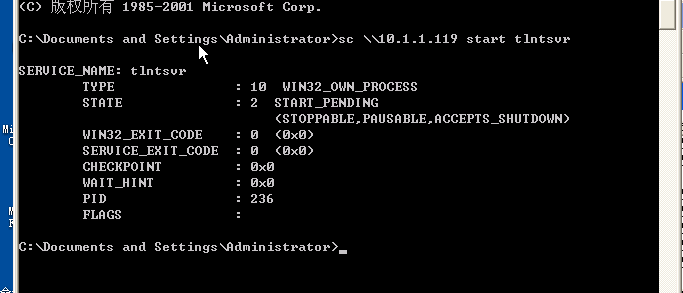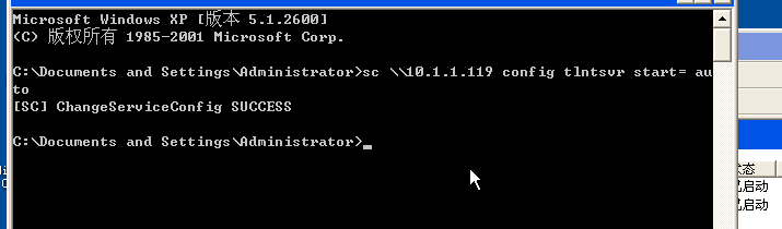 命令:sc \\10.1.1.119 config tlntsvr start= auto