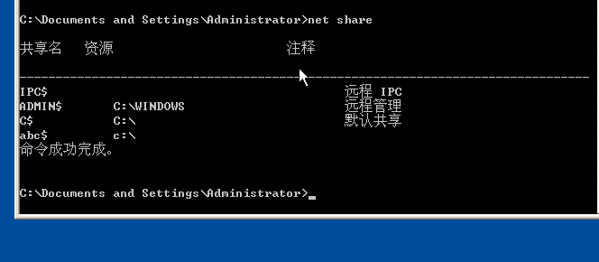 (9)登录后便可进行共享等相关操作,net share建立c$共享