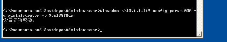 输入tlntadmn \\10.1.1.119 config port=1000 -u administrator -p 主机B的密码