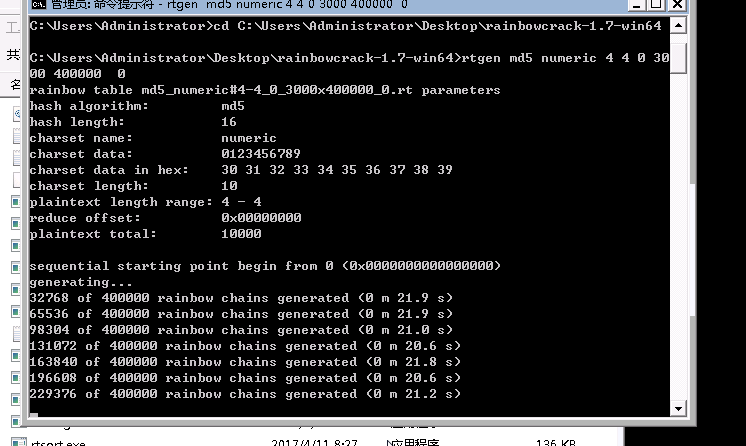 使用命令:rtgen md5 numeric 4 4 0 3000 400000 0