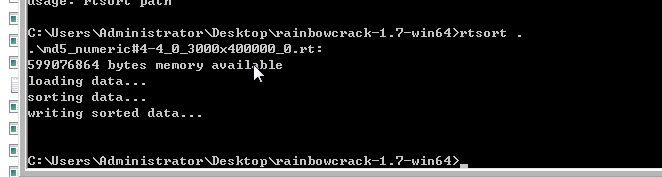 切勿中断rtsort程序; 否则被分类的彩虹表可能会被损坏。