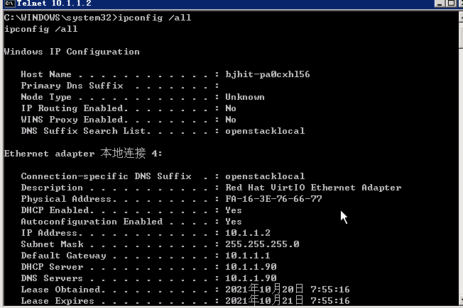 输入ipconfig /all 命令查看目标主机信息,看是否拿到目标主机shell。
