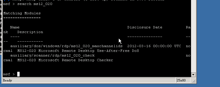 搜索一下这个漏洞的利用模块:search ms12_020