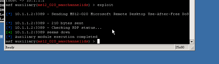 任务三:利用MS12-020漏洞溢出目标系统,使目标系统瘫痪
