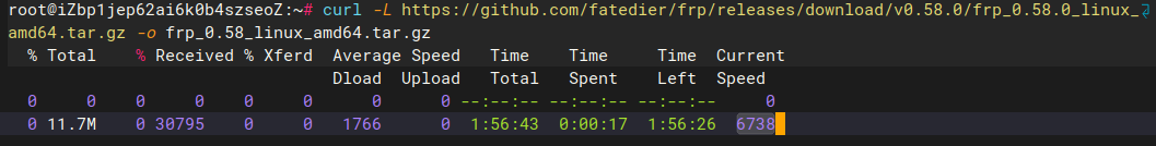 下载frp:curl -L https://github.com/fatedier/frp/releases/download/v0.58.0/frp_0.58.0_linux_amd64.tar.gz -o frp_0.58_linux_amd64.tar.gz