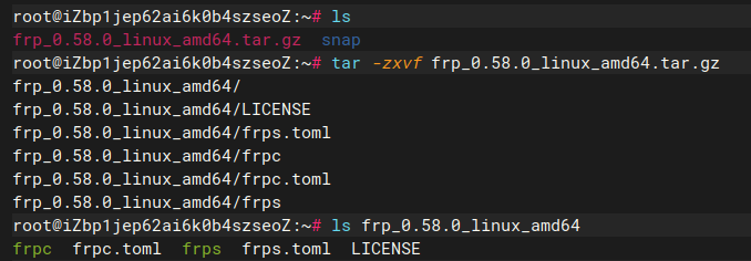 解压:tar -zxvf frp_0.58.0_linux_amd64.tar.gz