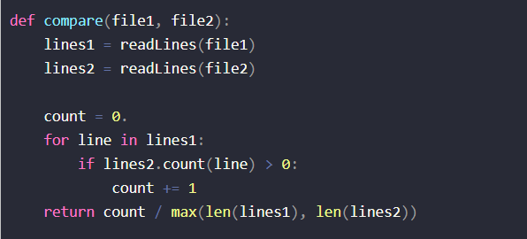 算法的关键自然就是余弦相似度了,但是单纯的余弦相似度并不适用与这一道题,因为样例中很多是为了测试而可以改出来的,正常抄论文谁这么抄啊。