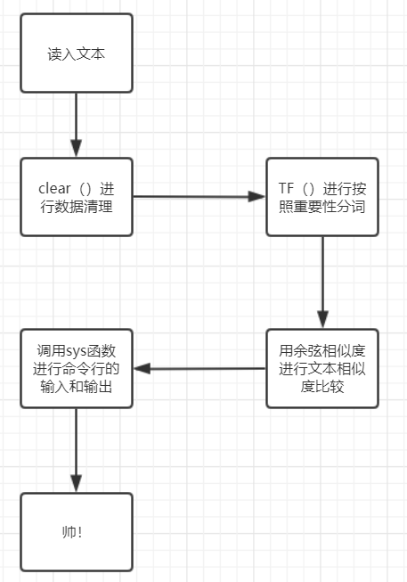 主要函数有三个,clear()函数做字符串处理,TF()函数做分词,以及coscompare()函数做文本比较