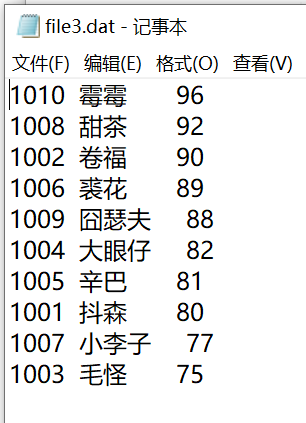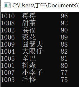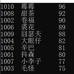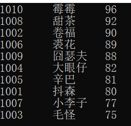 printf("%-6d%-10s%3d\n", st[i].num, st[i].name, st[i].score);