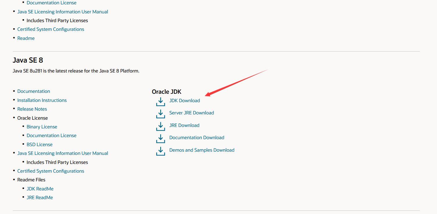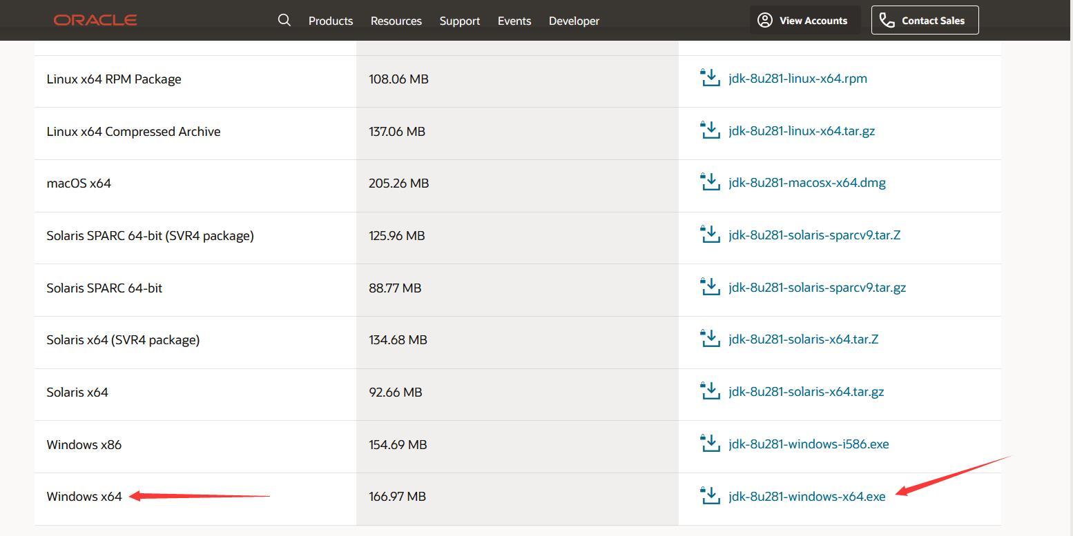 (官网:https://www.oracle.com/java/technologies/javase/) 这里选择JDK8(win x64 下载Oracle需要登录下载):