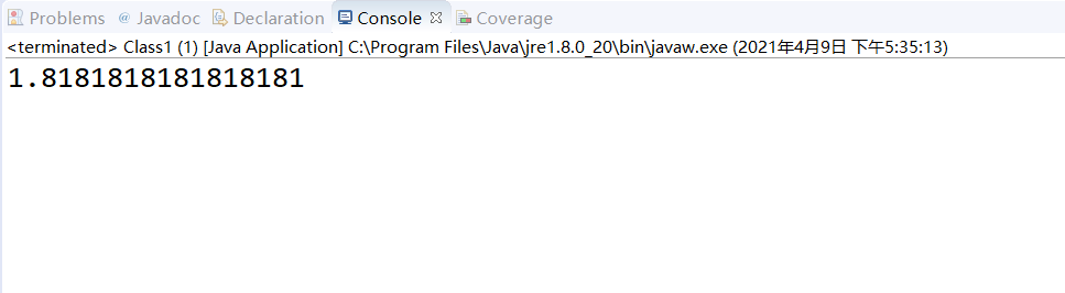 package Class; import java.util.Scanner; public class Class1 { /** * @param args */ public static void main(String[] args) { // TODO Auto-generated method stub double sum = 0; double a = 0; for (double i = 1; i < 11; i++) { a=a+i; sum=sum+1/a; } System.out.println(sum); } }