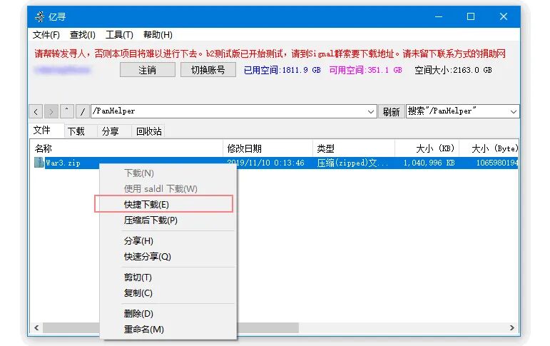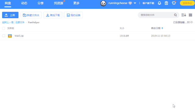 保存到你的网盘里,然后用上面的方法下载这个文件,看看能否顺利下载,还有速度如何。